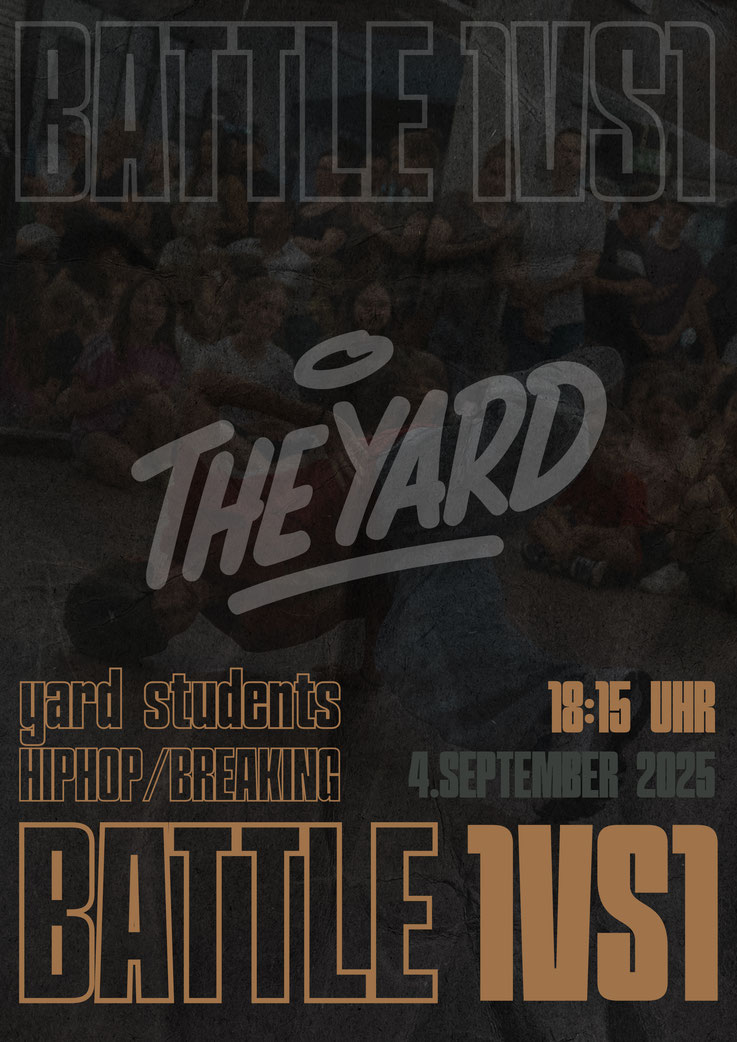 Es erwartet euch ein 1vs1 Breaking und 1vs1 HipHop Battle - exklusiv für alle YARD Schüler, unabhängig von Alter oder Niveau.